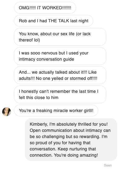 Our biggest problem was lack of intimacy and connection. My husband seemed totally checked out. Now I feel so much closer to him. We're talking more, being affectionate again, and even our sex life has improved dramatically. I'm so grateful that I came across this.
